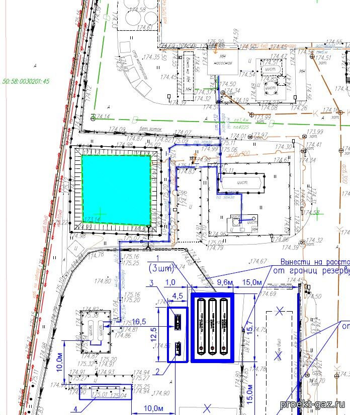 Слева от проектируемых подземных резервуаров, есть существующие наземные резервуары с изобутаном (проект проходил ЭПБ, есть свидетельство ОПО).